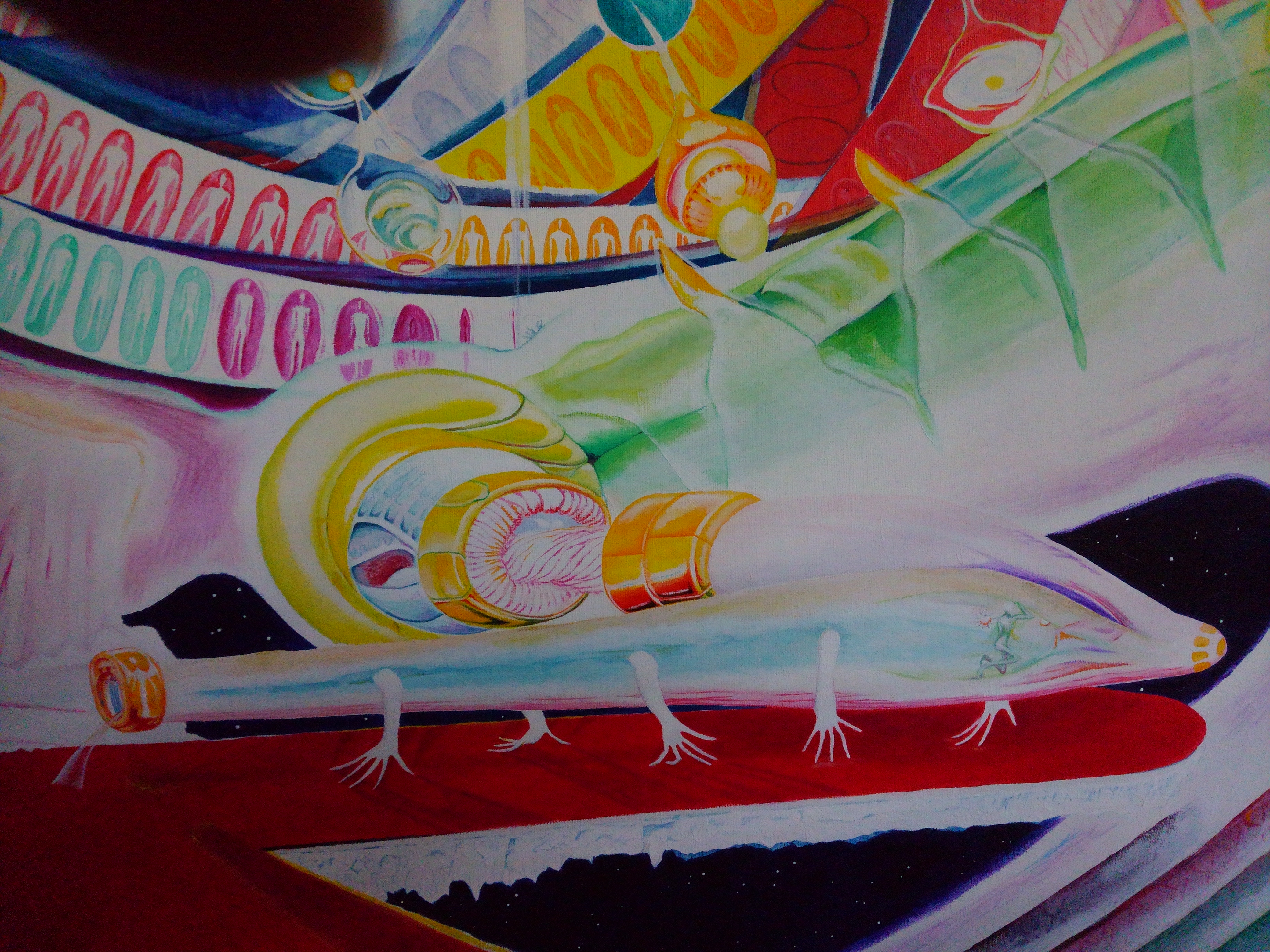 船は天使に見送られながら、上空へ昇り、宇宙へ出る。